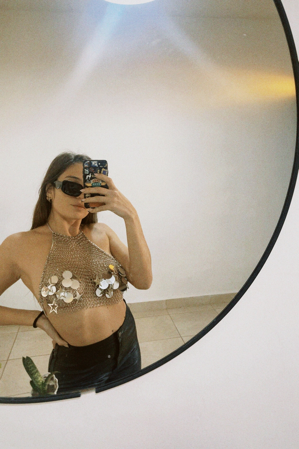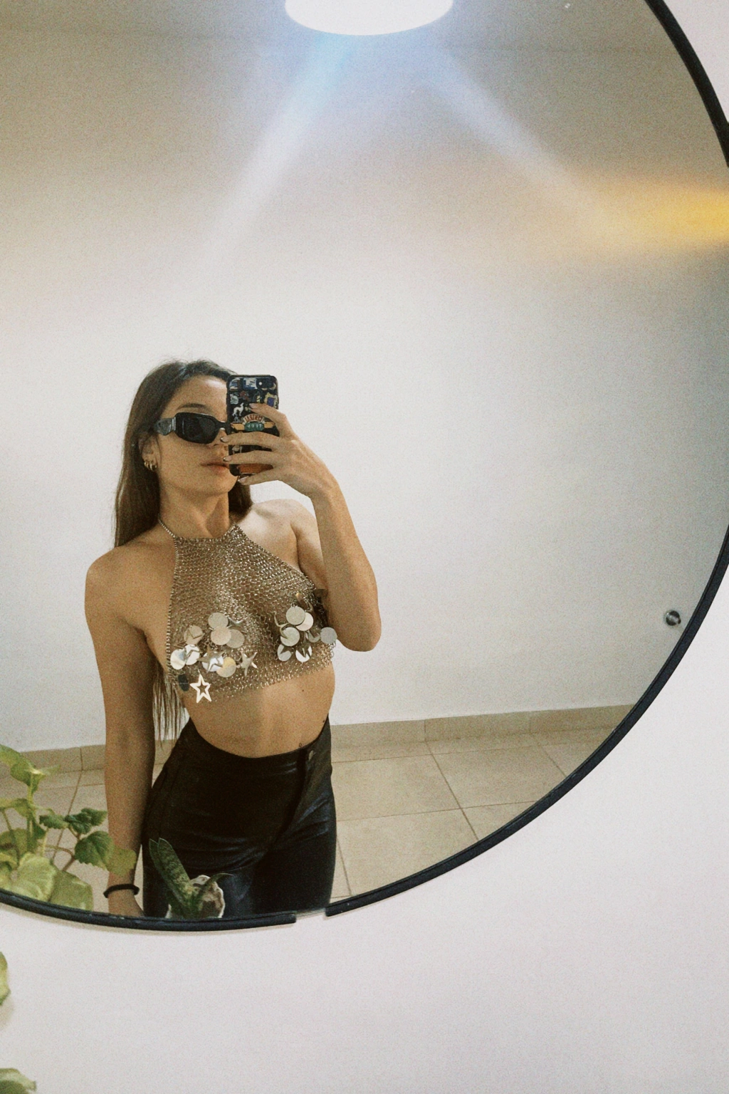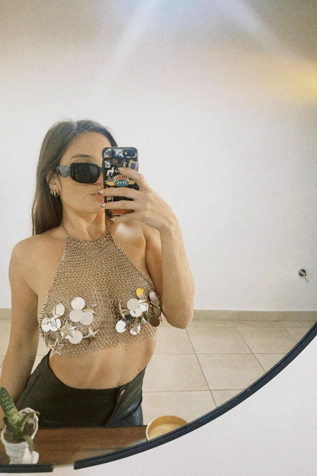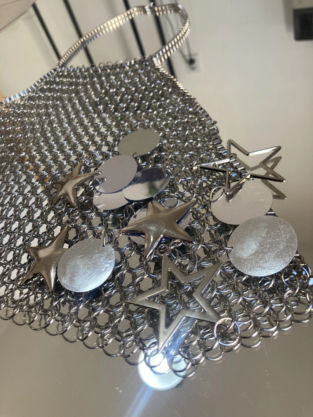 Top hecho 100% a mano con arandelas de níquel "cosidas" una por una. Tiene dijes de estrellas y lentejuelones plateados en el área de los pezones, por lo que es ideal para usarlo con pezoneras y romperla toda!