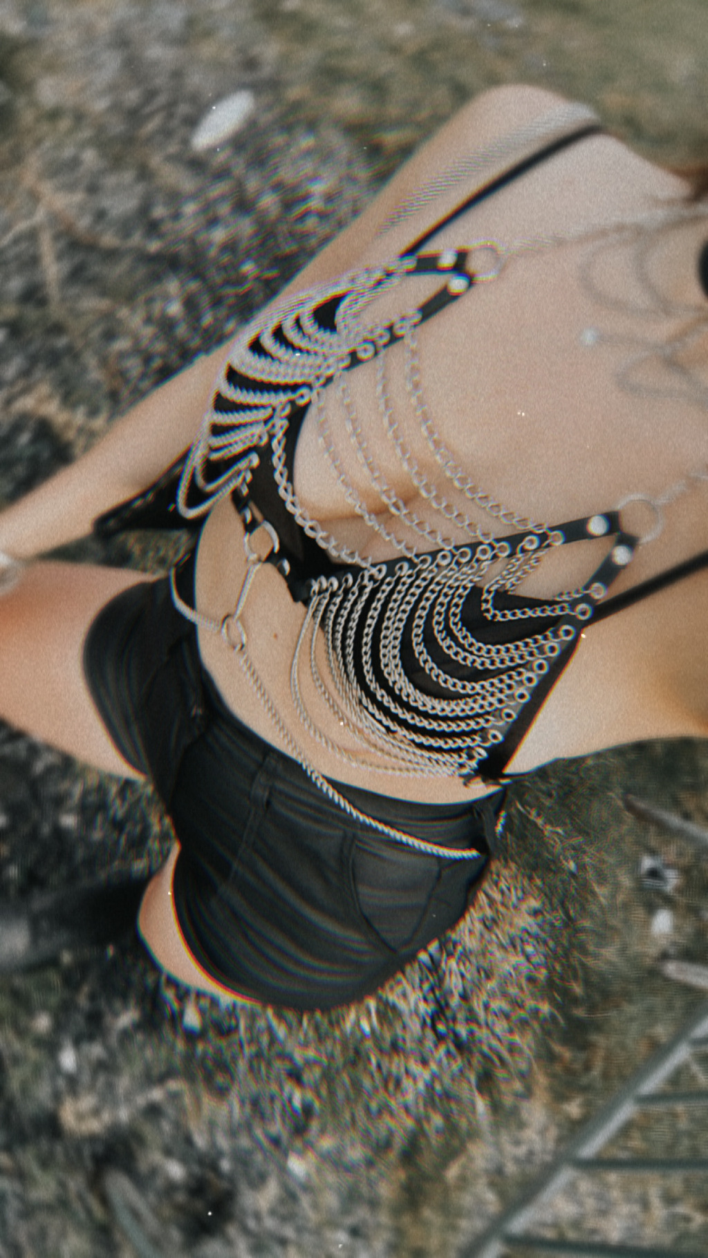 Top de cadenas de níquel y cuerina gruesa, hecho completamente a mano.
